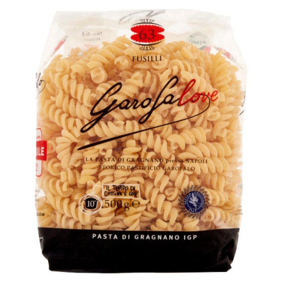 - GAROFALO Fusilli n.63 to klasyczny włoski makaron w kształcie spiralnych świderków, które doskonale zatrzymują sosy, zapewniając intensywny smak w każdym kęsie. Produkowany z najwyższej jakości semoliny z pszenicy durum, makaron zachowuje idealną teksturę al dente, dzięki czemu stanowi doskonałą bazę do wielu dań.
