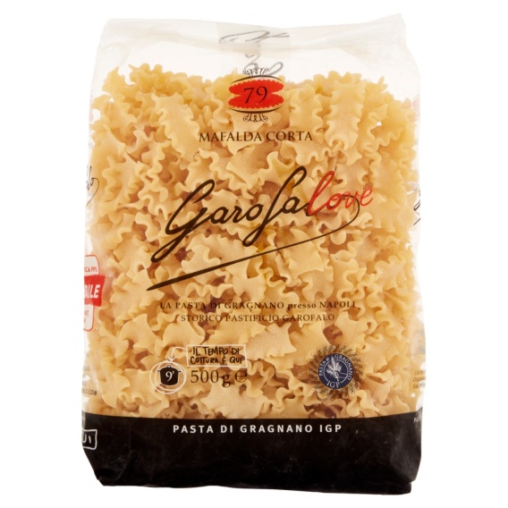 - Garofalo Mafalda Corta n.79 to wyjątkowy włoski makaron o charakterystycznym, falowanym kształcie. Krótkie wstążki z ozdobnymi brzegami nie tylko pięknie prezentują się na talerzu, ale także świetnie zatrzymują sosy, gwarantując intensywny smak każdego kęsa.