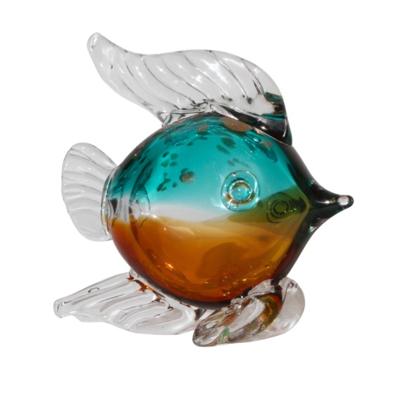 SZKLANA DEKORACJA Ryba Niebiesko-Bursztynowa 20cm